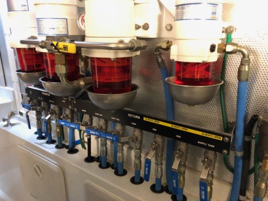 After attending the more advanced Northern Lights “Owner Operator Class,” I plunged into the annual servicing of both our main engine, generator and wing engine. This involved changing engine oil and oil filters, replacing the coolant on the generator and wing engine, replacing all seven fuel filters, and various other annual maintenance tasks. Bob Senter gives out his cell phone number if you take his engine classes, and I admit to checking with him a few times as I proceeded with the work for his always-helpful advice.